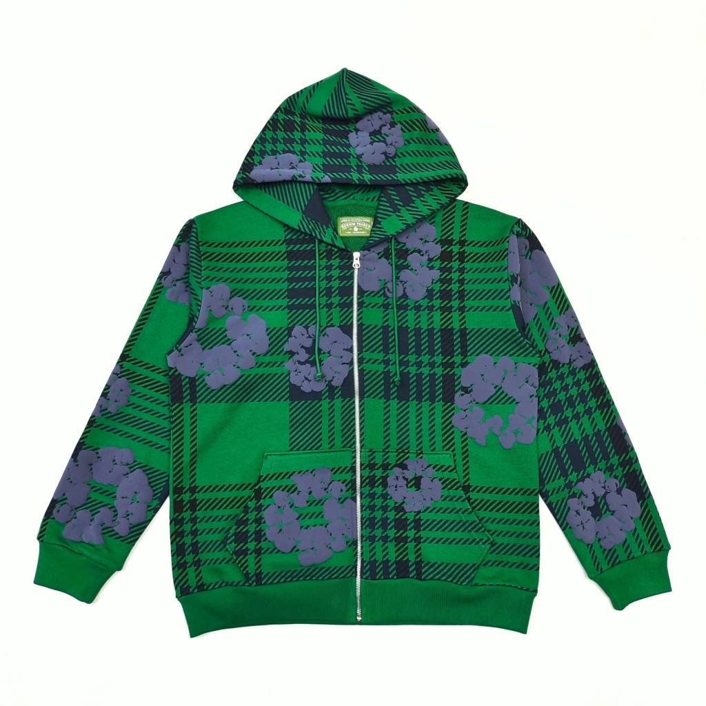 데님티어스 플레이드 코튼 리스 집업 후디 그린