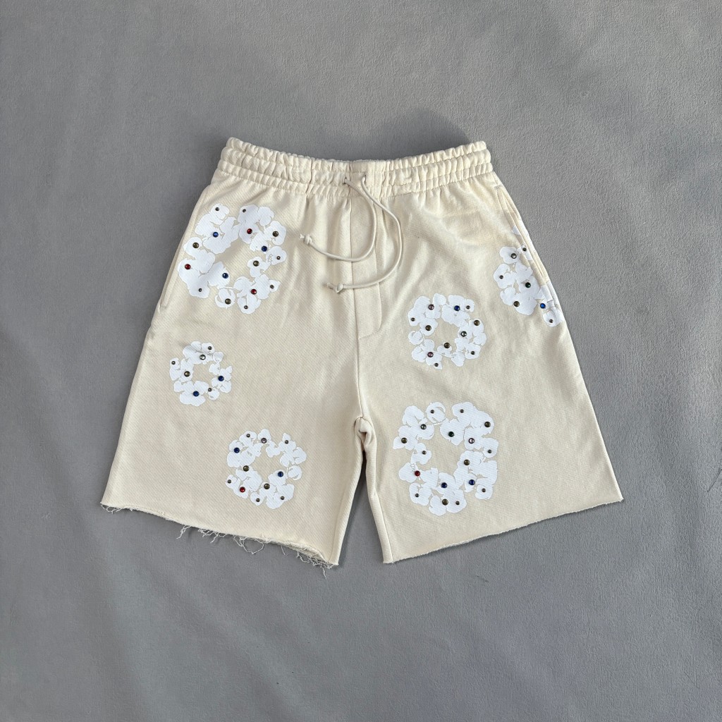 데님티어스 라인스톤 코튼 리스 스웻쇼츠 오트밀